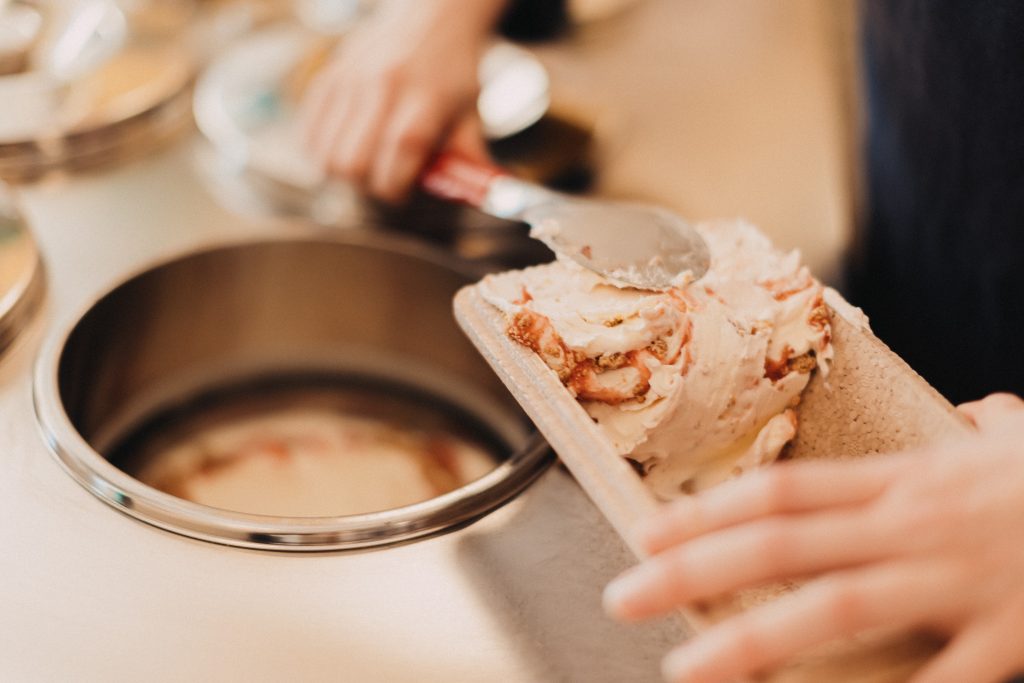 Based on my Nonna’s special Christmas trifle, this one is a custard base gelato swirled with cherry compote, crushed chocolate flakes, and chunks of trifle sponge soaked in sambuca. Nonna would approve.